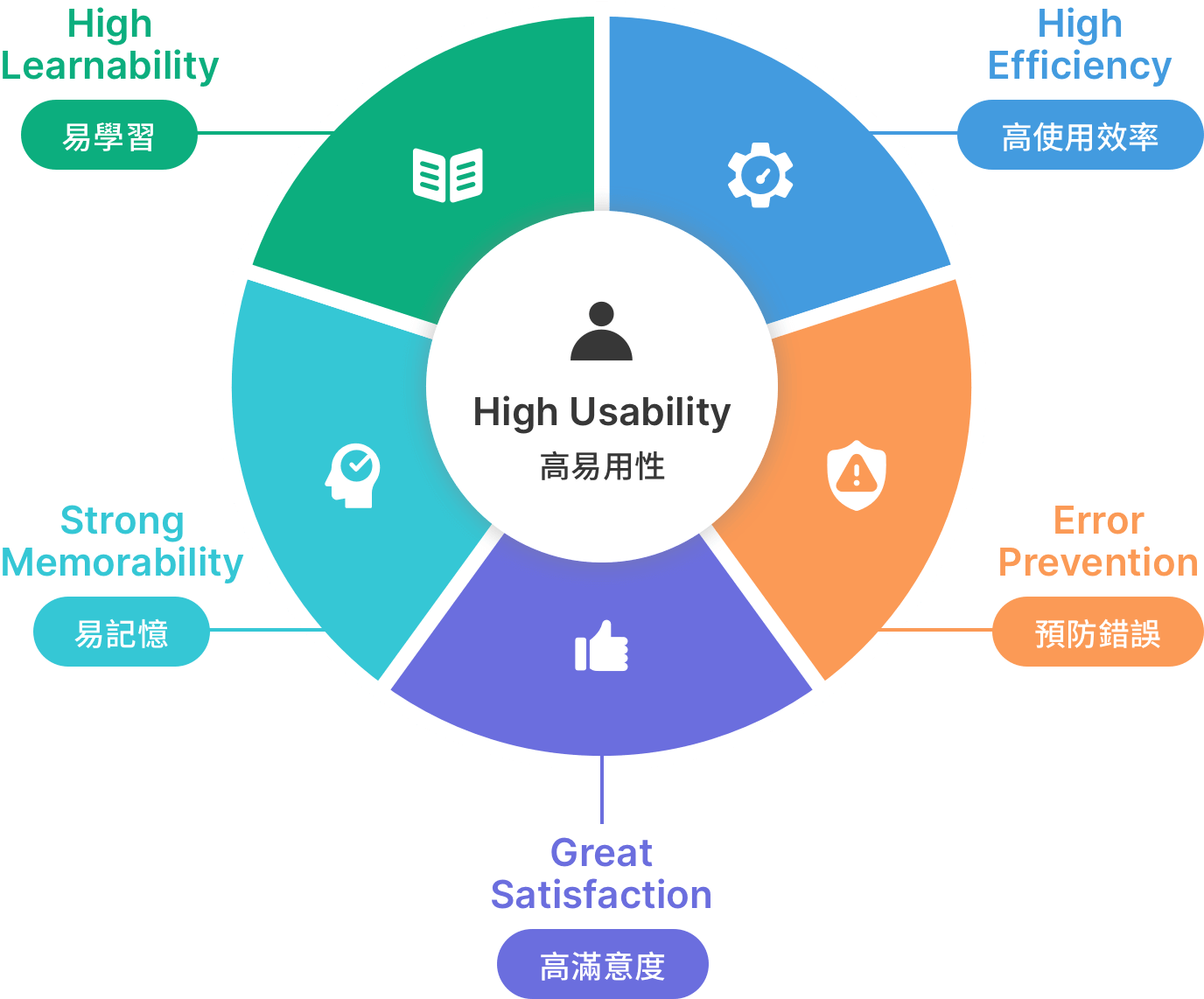 易用性 (Usability) 是一種以使用者為中心的產品設計概念,EasyUse 以使用者需求出發,持續進行產品迭代,設計開發高易用性產品,講求易學習、易記憶、高使用效率 、預防錯誤 ,成就高滿意度的使用者經驗。