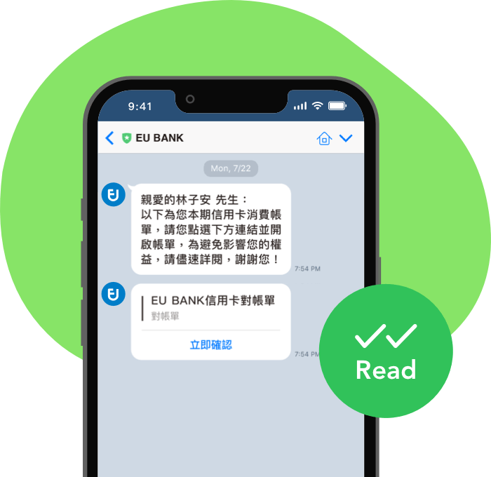 豐富的大型電子帳單系統建置經驗,能快速導入帳單電子化流程,整合 Email、LINE、傳真、簡訊、帳單網頁、快速查詢、指定補寄等多項功能,並提供高安全性、高可靠性、高擴充性的數位化解決方案。